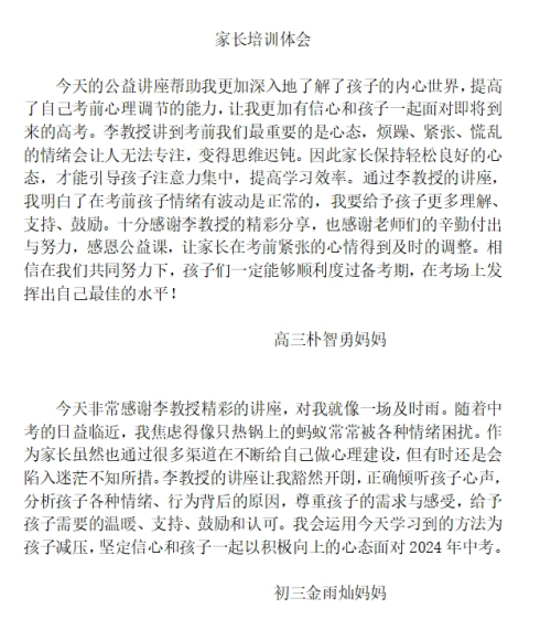 本次活動家長們認(rèn)真聆聽、用心體會、積極互動,掌握了如何正確地肯定和鼓勵(lì)孩子,平和地陪伴孩子度過沖刺階段。