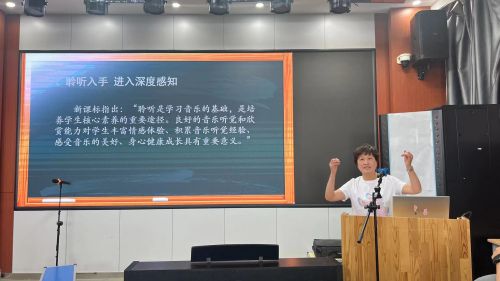 最后,薛金老師結(jié)合本次教研活動(dòng),從教學(xué)策略、情境素材、學(xué)習(xí)活動(dòng)三個(gè)方面作了《關(guān)注素養(yǎng)發(fā)展的唱歌教學(xué)和欣賞教學(xué)》專題講座。薛老師強(qiáng)調(diào),要引導(dǎo)學(xué)生在聽覺感知的基礎(chǔ)上學(xué)唱歌曲、重視對(duì)演唱姿勢(shì)、呼吸方法、音準(zhǔn)和節(jié)奏等方面的要求,要關(guān)注從“教作品”向“育素養(yǎng)”方向的轉(zhuǎn)變,逐步提高學(xué)生的音樂(lè)表現(xiàn)能力。
