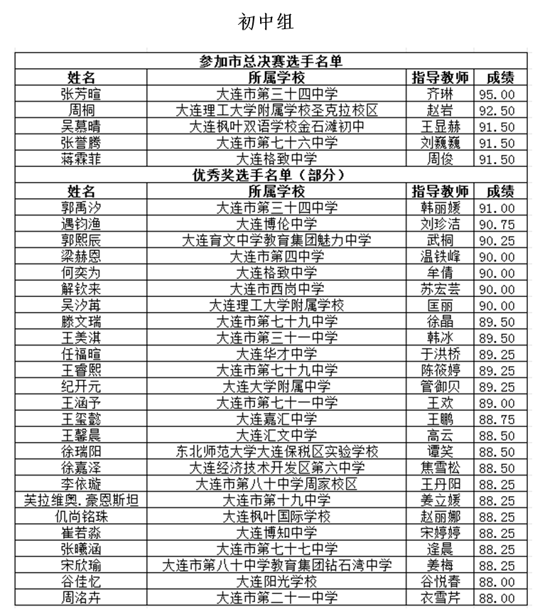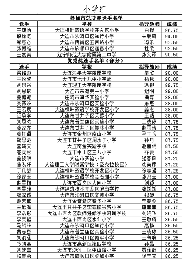 大連市第二十七屆"楓葉杯"英語演講比賽(小學(xué)、初中、高中組)獲獎名單