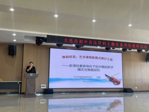 本次活動主題為“新課標(biāo)素養(yǎng)導(dǎo)向下的初中舞蹈有效教學(xué)評價”,由薛金老師主持。活動第一部分是課例觀摩,莊河市第七中學(xué)孟周笛老師執(zhí)教的舞蹈課《軍民團(tuán)結(jié)一家親》,展示了藝術(shù)新課標(biāo)理念下的初中舞蹈教學(xué)的教學(xué)模式和評價策略。活動第二部分是莊河市初中音樂教研員鄭惠老師作題為《舞韻研思,藝術(shù)課程探行之旅——新課標(biāo)素養(yǎng)導(dǎo)向下初中舞蹈教學(xué)模式與策略探究》的專題點(diǎn)評。