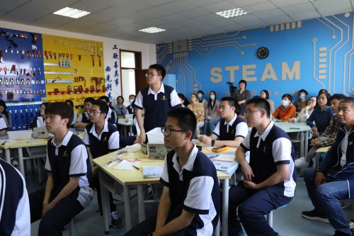 最后,全體教師走進(jìn)大連市普通高中創(chuàng)新實(shí)踐學(xué)校各模塊實(shí)驗(yàn)室,參觀了各模塊的物化作品,并就實(shí)驗(yàn)室設(shè)備、選材、技術(shù)特點(diǎn)、制作方法、制作周期等問題與模塊教師展開深入交流。老師們紛紛表示,這次活動讓他們對“大概念、大單元”教學(xué)理念有了更深入地了解,對教學(xué)設(shè)計(jì)的思路和方法也有了新的認(rèn)識。