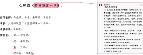 5月,心理研訓(xùn)中心對(duì)上報(bào)的94個(gè)市級(jí)劇本進(jìn)行一對(duì)一多輪精心指導(dǎo),幫助教師明確學(xué)生心理需求和困惑,理清心理發(fā)展脈絡(luò),突出心理沖突和轉(zhuǎn)化,精化校園心理劇技術(shù)應(yīng)用。同時(shí),協(xié)同各縣市區(qū)教師進(jìn)修學(xué)校指導(dǎo)各中小學(xué)校開展校園心理劇創(chuàng)編和展演。