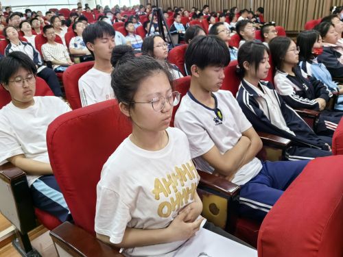 活動(dòng)開始,王老師首先帶領(lǐng)同學(xué)們進(jìn)行“手指曼波”,現(xiàn)場(chǎng)氣氛瞬間輕松活躍起來(lái)。王老師通過(guò)勵(lì)志的小視頻讓學(xué)生體會(huì)到人的潛力是無(wú)限的,并引導(dǎo)學(xué)生用正向思維和積極心理暗示來(lái)強(qiáng)化信心,激發(fā)潛能。王老師教授同學(xué)們用深呼吸和肌肉放松訓(xùn)練來(lái)緩解考前和考中出現(xiàn)的緊張焦慮情緒,最后王老師鼓勵(lì)同學(xué)們相信自己,勇于面對(duì)挑戰(zhàn),全力以赴、堅(jiān)持到底。