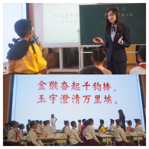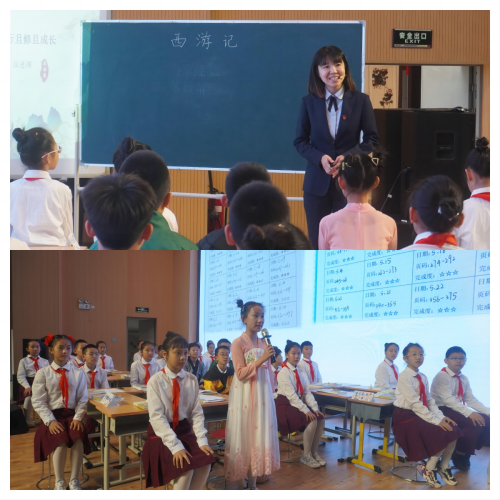 接著,紅星海學(xué)校閻天紅老師和張琳琳老師分別執(zhí)教《西游記》推進(jìn)課和分享課。閻天紅老師巧妙地引導(dǎo)著學(xué)生們深入《西游記》的世界,帶領(lǐng)同學(xué)們分析人物特點(diǎn)、寫作手法、通過有趣的人物排行榜、解決閱讀難題、分享成長(zhǎng)故事讓學(xué)生們對(duì)原著的理解更上一層樓。張琳琳老師在分享課中,讓學(xué)生們通過總結(jié)西游記取經(jīng)路線圖、精彩的小組討論、精心的課本劇展演、巧妙的時(shí)空對(duì)話,不僅增強(qiáng)了學(xué)生們的自信心,更鍛煉了他們的實(shí)踐能力。這兩節(jié)課例為一線小學(xué)語(yǔ)文教師提供了極具參考價(jià)值的整本書閱讀教學(xué)的新思路和新方法。