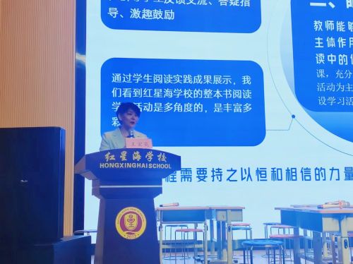 2024年5月30日下午,大連市小學(xué)語(yǔ)文高段主題化、系列化教研活動(dòng)之三——“整本書閱讀”學(xué)習(xí)任務(wù)群研究教研活動(dòng)在大連經(jīng)濟(jì)技術(shù)開發(fā)區(qū)紅星海國(guó)際學(xué)校順利召開,各區(qū)小學(xué)高段語(yǔ)文教師線上、線下共近400人參加了本次教研活動(dòng)。