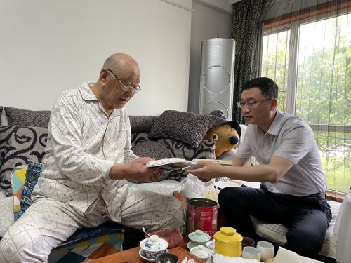 在走訪中,離休老干部對學(xué)院領(lǐng)導(dǎo)和工作人員的到來表示熱烈歡迎,兩位老干部回憶起當(dāng)年的崢嶸歲月,分享了他們各自在黨的培養(yǎng)下不斷成長和奮斗的歷程。高凱副書記向李彧贈送了書籍,李彧激動地表示:“革命一輩子,學(xué)習(xí)一輩子,創(chuàng)新的時代,要不斷加強(qiáng)學(xué)習(xí)。”一行人還詳細(xì)了解了離休老干部們的生活情況,通過本次走訪活動不僅增進(jìn)了學(xué)院對離休老干部的了解,也讓走訪工作人員更加深刻地認(rèn)識到傳承和弘揚(yáng)中華優(yōu)秀傳統(tǒng)文化的重要性。