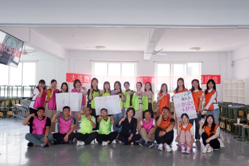心理拓展活動以“大/小風吹”和圍圈按摩熱身啟動,教師積極參加,氣氛熱烈。分組后,各組構思組名、口號以及設涵蓋小組所有成員特征的logo,并設計隊形進行展示。“滅人隊”喊出“代表金橋消滅你們”的挑戰(zhàn),“可愛隊”設計“happinessisfearless”的追求,“玫瑰隊”喊出“鏗鏘玫瑰舍我其誰”的口號。