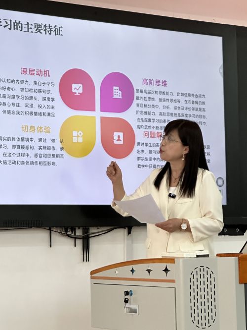 學(xué)院高中研訓(xùn)中心崔紅巖老師做了《深度學(xué)習(xí)背景下教師的專業(yè)成長》的報(bào)告。深度學(xué)習(xí)是信息時(shí)代教學(xué)變革的必然選擇,與機(jī)器共舞,呼喚時(shí)代的創(chuàng)造者,現(xiàn)實(shí)困境是被卡在過去的課堂教學(xué)里,教育該向何處去,教師的角色該怎樣轉(zhuǎn)變?崔老師指出,深度學(xué)習(xí)是在教師的引領(lǐng)下,學(xué)生圍繞著具有挑戰(zhàn)性的學(xué)習(xí)主題,全身心積極參與、體驗(yàn)成功、獲得發(fā)展的有意義的學(xué)習(xí)過程,以此形成積極的內(nèi)在學(xué)習(xí)動(dòng)機(jī)、高級的社會(huì)性情感、積極的態(tài)度、正確的價(jià)值觀,成為既具有獨(dú)立性、批判性、創(chuàng)造性又有合作精神、基礎(chǔ)扎實(shí)的優(yōu)秀的學(xué)習(xí)者,成為未來社會(huì)歷史實(shí)踐的主人。崔老師希望每位老師,不分年齡,永遠(yuǎn)都不要拒絕成長,去成就更好的自己。