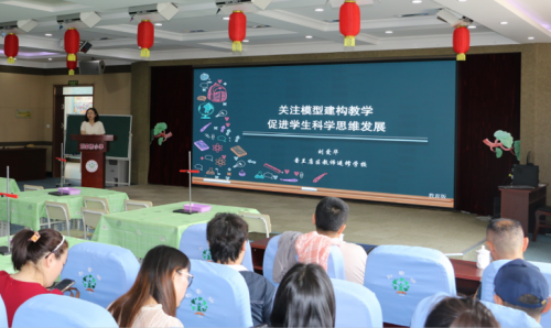 活動伊始,由普蘭店區(qū)教師進修學校科學教研員劉愛華老師作《關注模型建構教學促進學生科學思維發(fā)展》的專題講座。劉老師從認識模型及其分類、對模型建構的理解、模型建構教學的一般過程及教學策略幾個方面展開交流,列舉了大量生動的模型實例和具體教學課例,指出模型建構作為一種認識手段和思維方式,貫穿于科學研究和科學學習的全過程,它對于學生科學學習和核心素養(yǎng)的養(yǎng)成具有重要意義和價值。作為科學教師要重視模型建構教學,充分了解其內涵特征,準確把握建模時機,精心設計與組織教學活動,重視模型的自建與生成,讓學生在親身經歷建模過程中透徹理解學科知識,習得探究技能,產生有效的思維進階。