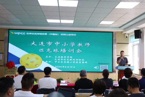 2024年6月13日下午,新興體育類運(yùn)動(dòng)進(jìn)校園(二)——匹克球項(xiàng)目教學(xué)指導(dǎo)教研活動(dòng)在大連市東港小學(xué)教育集團(tuán)第三小學(xué)舉行。大連教育學(xué)院藝體勞研訓(xùn)中心主任楊俊偉、副主任黃彥,大連市匹克球協(xié)會(huì)會(huì)長(zhǎng)丁善智以及市體育局相關(guān)領(lǐng)導(dǎo)出席本次活動(dòng)。共有來自全市70所小學(xué)的近百名體育教師參加本次教研活動(dòng)。活動(dòng)由大連教育學(xué)院小學(xué)體育教研員周圣主持。