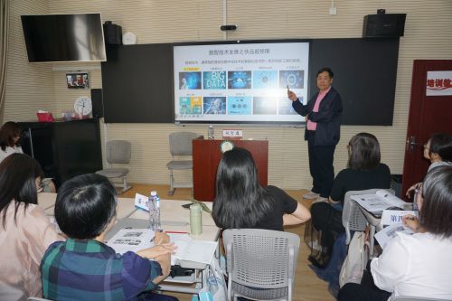 閆寒冰院長從中觀策略層面,以《育人模式變革與教師專業(yè)發(fā)展》為題,從新時代育人模式變革的角度切入,指出教師專業(yè)成長模式變革的理念、方法與路徑;在微觀實踐層面,以《GenAI賦能教學(xué)設(shè)計創(chuàng)新》為題,遵循流程思維和思考模型兩把GenAI賦能的“金鑰匙”,詳細(xì)闡述GenAI賦能創(chuàng)新教學(xué)的設(shè)計路徑,包含面向核心素養(yǎng)的能力分解、大概念與核心問題提取、高階問題建構(gòu)、表現(xiàn)性任務(wù)和教學(xué)流程設(shè)計,通過豐富的教學(xué)案例、新穎的課堂組織形式為學(xué)員帶來全新的深度學(xué)習(xí)體驗。