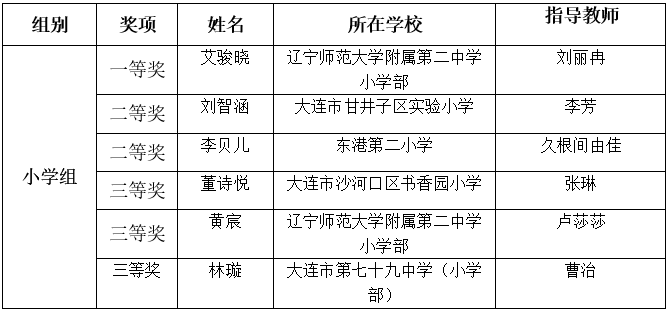 小學(xué)組獲獎(jiǎng)名單: