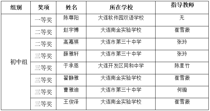 初中組獲獎(jiǎng)名單: