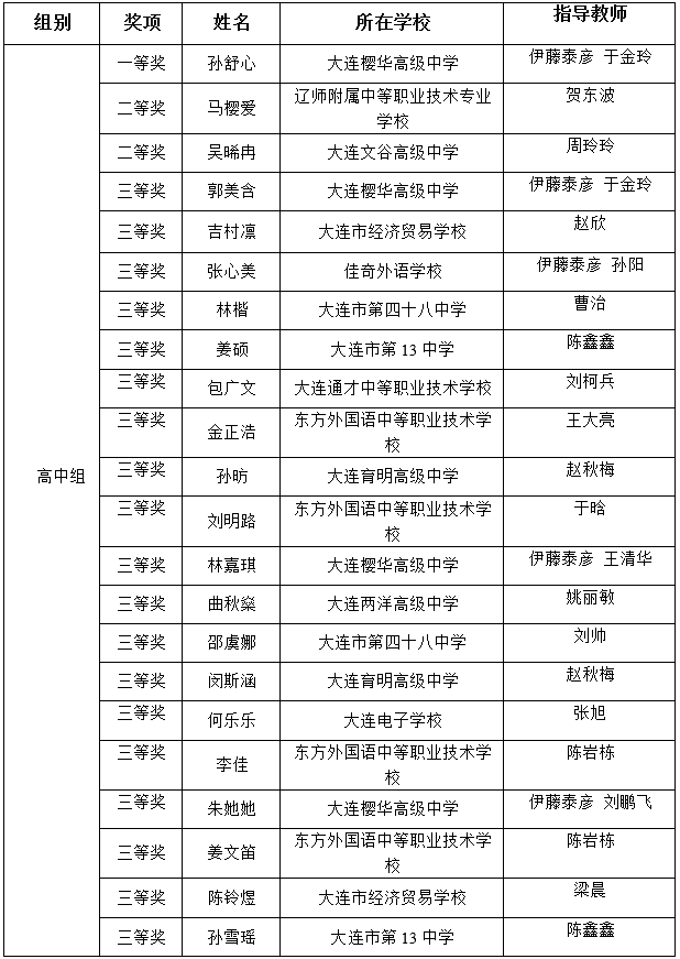 大連市第35屆"佳能杯"日語(yǔ)演講比賽(中小學(xué)組)獲獎(jiǎng)名單