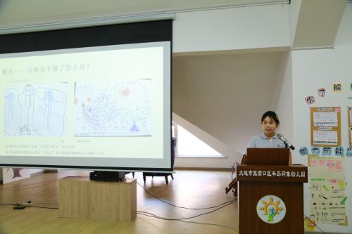 活動開始,半島印象幼兒園園長郭莉莉以“尋光去、向陽生”為題,分別從“庭院設(shè)計理念”“課程觀的改變”以及“戶外混齡運動”三個方面同參研教師們進行經(jīng)驗分享,幼兒園蘊含自然特色的游戲環(huán)境、富有多樣層次的游戲空間、孩子們富有野趣挑戰(zhàn)的游戲體驗、庭院里的四季課程以及大中小班混齡戶外體能大循環(huán)運動都深深吸引了參研教師。接著,半島印象幼兒園中班陳瑋老師進行《滑坡大挑戰(zhàn)》戶外自主游戲案例分享。隨后,朱璟老師進行了“基于兒童立場的幼兒園戶外活動場地規(guī)劃與環(huán)境創(chuàng)設(shè)策略研究”的專題培訓,針對戶外環(huán)境創(chuàng)設(shè)中如何滿足幼兒的興趣和需要、如何打破區(qū)域界限構(gòu)建開放性的環(huán)境、如何充分開發(fā)幼兒園的縱向橫向空間等大家關(guān)注的問題進行了有針對性的指導。最后全體參研人員觀摩了半島印象幼兒園戶外活動的現(xiàn)場,參研者時而駐足拍照,時而追隨幼兒的目光、聆聽幼兒的心聲,近距離觀看幼兒在游戲中與環(huán)境、材料、老師、同伴的交流互動,見證自主的游戲環(huán)境中幼兒的生長力量。