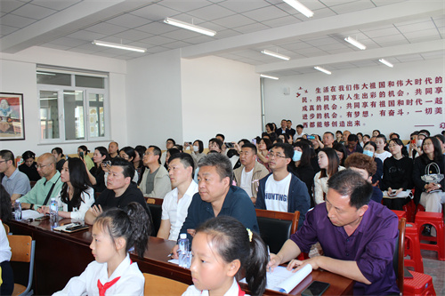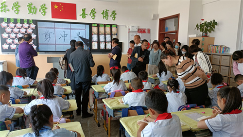 參會人員首先參觀了德賢學校的校園書法文化和書法展室:操場上張貼著小學部全體師生書法作品的8張展板一字排開,成為學校一道靚麗的書法墻;樓內走廊懸掛的師生書法作品、書法展室琳瑯滿目的學生作品更是得到了大家的高度評價。
