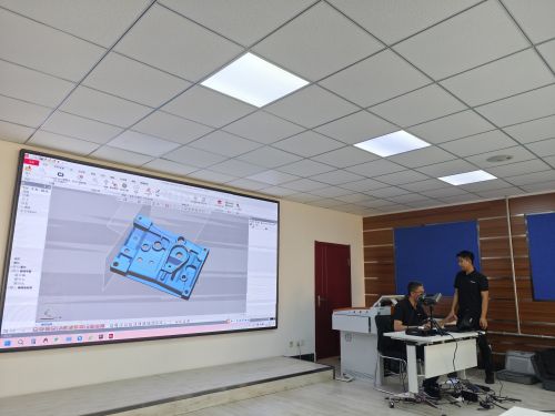 活動邀請先臨三維科技股份有限公司東北地區(qū)總經(jīng)理王鑫雨和技術(shù)工程師鐘群兩位專家,他們來自企業(yè),分別從高精度三維測量技術(shù)與高端制造業(yè),常見高精度三維測量設(shè)備,行業(yè)應(yīng)用,教育科研等幾個方面介紹了現(xiàn)在行業(yè)企業(yè)的發(fā)展前沿與先進(jìn)技術(shù),同時(shí)演示了手持3D掃描儀現(xiàn)場采集汽車零部件數(shù)據(jù),逆向設(shè)計(jì),造型建模的過程,為現(xiàn)場教師帶來一場先進(jìn)的技術(shù)盛宴。