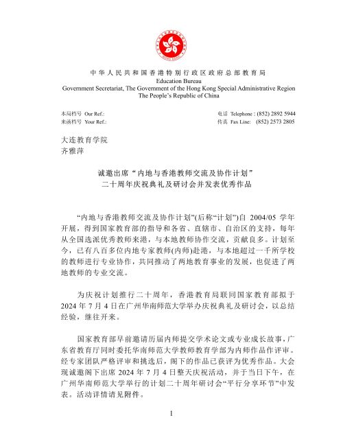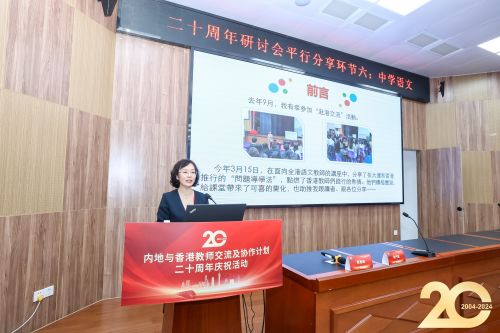 7月4日,由教育部港澳臺(tái)事務(wù)辦公室、中央人民政府駐香港特別行政區(qū)聯(lián)絡(luò)辦公室教育科技部、香港特別行政區(qū)政府教育局主辦的“內(nèi)地與香港教師交流及協(xié)作計(jì)劃”二十周年慶祝典禮及研討會(huì)在華南師范大學(xué)隆重舉辦。來自教育部有關(guān)部門、各省(自治區(qū)、直轄市)教育行政部門、全國各地中小學(xué)校的領(lǐng)導(dǎo)、專家、“內(nèi)師計(jì)劃”參與者等400余人齊聚一堂,分享歷年活動(dòng)成果,謀劃未來工作設(shè)想。我院初中語文研訓(xùn)教師齊雅萍作為本屆內(nèi)師代表之一,應(yīng)邀在“平行分享分論壇”作經(jīng)驗(yàn)交流。