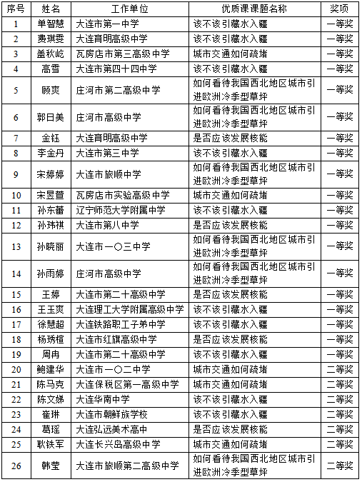 2024年大連市高中地理學科優(yōu)質(zhì)課獲獎名單