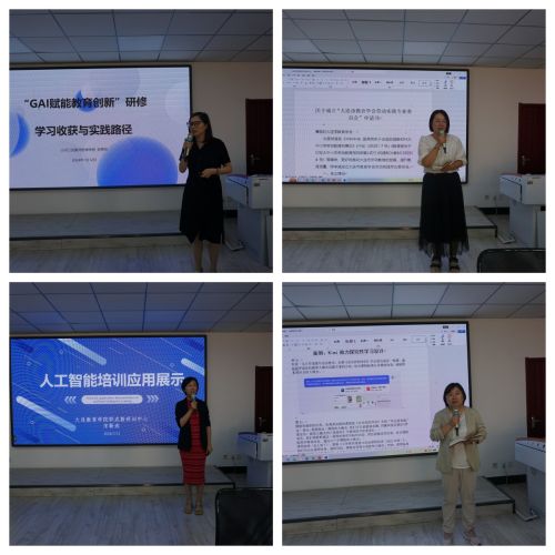 小學研訓中心王芳老師和高中研訓中心孫越老師作為學員代表,分享其教育信息化課題的研究歷程與實踐經驗,展示區(qū)域教育信息化現有研究成果,激發(fā)了學員應用GenAI技術賦能教育創(chuàng)新的研究熱情。