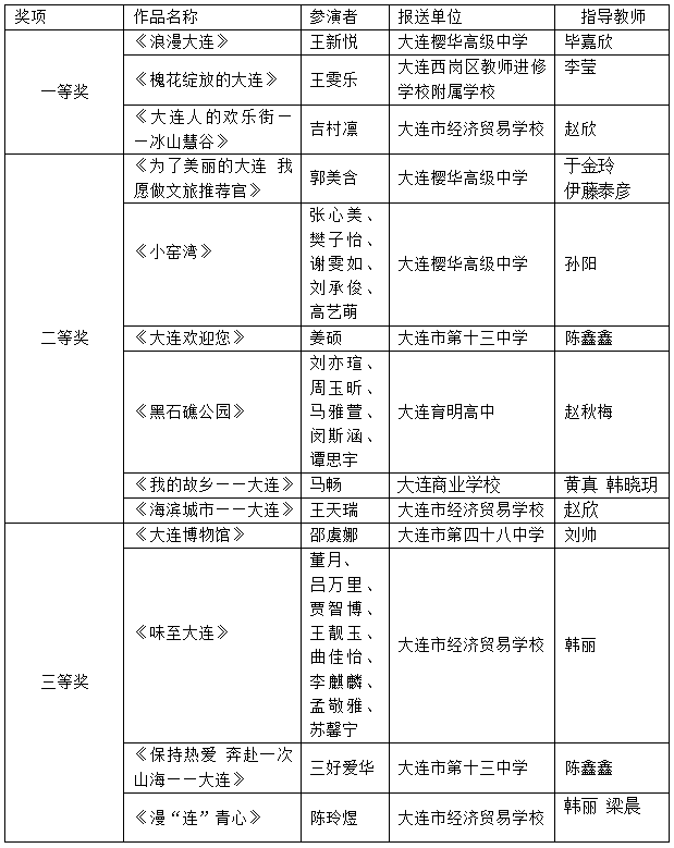大連市首屆"青音詠連"日語短視頻征集活動獲獎名單