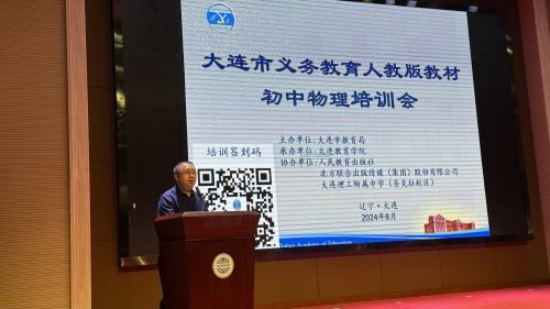 在金秋送爽的季節(jié)里,大連市初中物理教育界迎來了一場意義非凡的盛會。8月27日上午,由大連市教育局主辦、大連教育學(xué)院攜手人民教育出版社、北方聯(lián)合出版?zhèn)髅剑瘓F(tuán))股份有限公司承辦的大連市義務(wù)教育人教版教材初中物理培訓(xùn)會在大連理工附屬學(xué)校(圣克拉校區(qū))隆重舉行。本次培訓(xùn)采用線上、線下混合的方式進(jìn)行,市內(nèi)五區(qū)全體物理教師參加線下培訓(xùn),其他各區(qū)(市)采用線上同步學(xué)習(xí)參與,共有1100余位教師參與了本次教材培訓(xùn)。