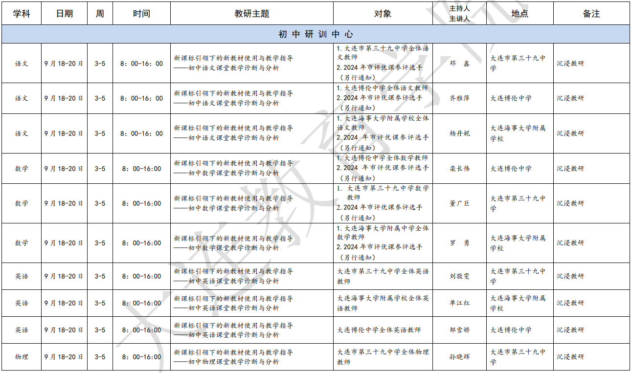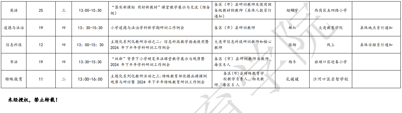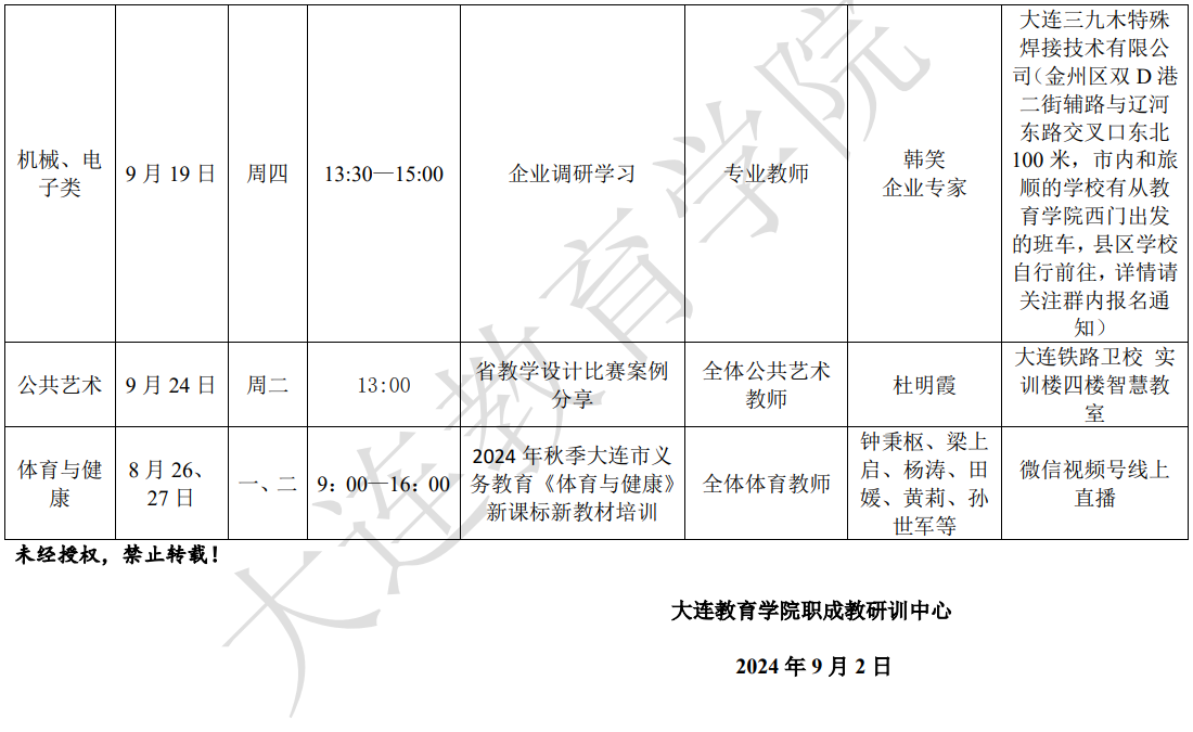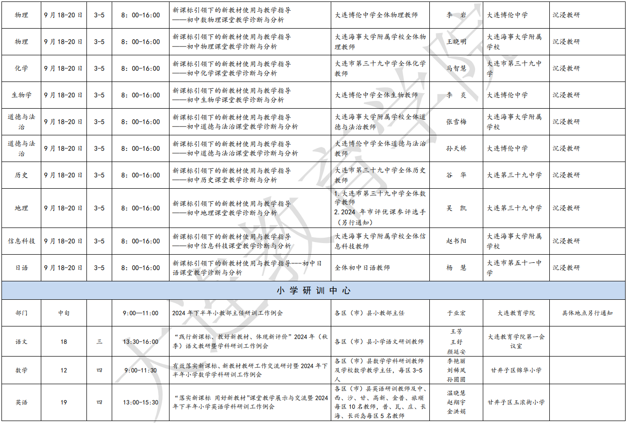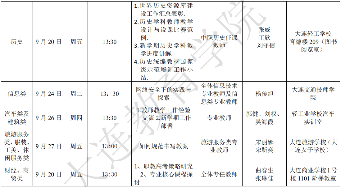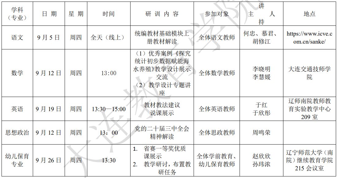 大連教育學(xué)院2024年9月教研活動一覽表