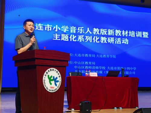 8月29日,由大連市教育局、大連教育學院主辦,人民教育出版社、北方聯合出版?zhèn)髅剑瘓F)股份有限公司、中山區(qū)教育局、中山區(qū)教師進修學校、大連市第四十四中學承辦的“大連市小學音樂人教版新教材培訓暨主題化系列化教研活動”成功舉辦。人民教育出版社音樂編輯室張瑩瑩主任,大連教育學院副院長趙妤婕、藝體勞研訓中心主任楊俊偉,大連市教育局安體衛(wèi)處張瑩老師,中山區(qū)教師進修學校、大連市第四十四中學相關領導參加了活動。培訓采用線上、線下混合的方式進行,市內五區(qū)全體小學音樂教研員、音樂教師參加線下培訓,其他各區(qū)(市)采用線上同步學習參與,共有1200余位教師參與了本次教材培訓。