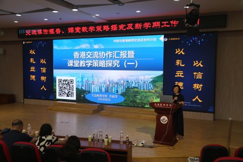 活動歷時兩個小時。首先由齊老師總結(jié)了為期一年的香港交流協(xié)作工作。她以香港印象為出發(fā)點,利用互動軟件和精彩視頻,為參會教師概括介紹了香港的政治、歷史、文化、地理等方面特色;然后對比展示了兩地可相互借鑒的教育、教學(xué)亮點;接著在“教學(xué)策略探究及建議”這一板塊,齊老師在展示了“問題導(dǎo)學(xué)法”在香港課堂得以推廣、深化與發(fā)展的情況之后,重點以九年級上下冊第一單元為例,引領(lǐng)教師探究以“守正創(chuàng)新,用有效教學(xué)之不變應(yīng)萬變”為核心的迎接省中考六大策略:用好教材,以讀促寫,讀寫雙贏;落實一課一得,提高課堂效率;加強(qiáng)“1+x閱讀”,夯實讀書底蘊(yùn);建構(gòu)知識網(wǎng),加強(qiáng)整體系統(tǒng)認(rèn)知;開展情境教學(xué),引導(dǎo)實踐應(yīng)用;實施課程重整,落實單元整體教學(xué)。最后由楊丹妮老師解讀初中語文學(xué)科上學(xué)期的教研工作重點,并從關(guān)注新教材的角度引導(dǎo)教師積極有效落實新課程標(biāo)準(zhǔn)。