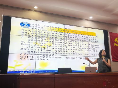 隨后,大連教育學(xué)院高中研訓(xùn)中心思想政治教研員唐銘老師結(jié)合2024年遼寧高考思想政治試題進(jìn)行了備考指導(dǎo)。她簡要介紹了遼寧省高考自主命題的目的和意義,并結(jié)合具體試題,從材料邏輯、設(shè)問邏輯、答案邏輯的視角,深入探討了高考試題的命題原則和導(dǎo)向,號召全體高三思想政治教師聚焦高考試題,在復(fù)習(xí)備考過程中,以指向深度學(xué)習(xí)的教學(xué)評一體化單元整體設(shè)計為抓手,培養(yǎng)學(xué)生高階思維能力,實現(xiàn)高質(zhì)量復(fù)習(xí)。