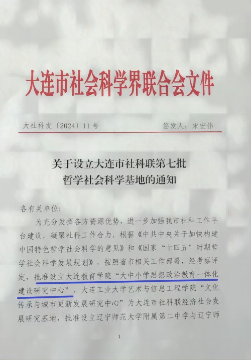 近日,大連市社會(huì)科學(xué)界聯(lián)合會(huì)公布了大連市社科聯(lián)第七批哲學(xué)社會(huì)科學(xué)基地的名單。我院黨委副書記高凱教授負(fù)責(zé)的“大中小學(xué)思想政治教育一體化建設(shè)研究中心”獲批大連市社科聯(lián)經(jīng)濟(jì)社會(huì)發(fā)展研究基地(以下簡(jiǎn)稱“基地”)。