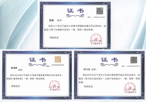 在2024年遼寧省中小學(xué)美術(shù)課堂教學(xué)評(píng)優(yōu)展示交流活動(dòng)中,大連市初中美術(shù)學(xué)科再創(chuàng)佳績,選拔推送的三節(jié)課全部榮獲一等獎(jiǎng),取得連續(xù)三屆全部獲得一等獎(jiǎng)的好成績。本屆三位獲獎(jiǎng)教師分別是大連市第二十六中學(xué),張濤,執(zhí)教《兩個(gè)外國美術(shù)流派》;大連市中山區(qū)東港第一中學(xué),邢書婷,執(zhí)教《吉祥紋樣》;大連經(jīng)濟(jì)技術(shù)開發(fā)區(qū)第六中學(xué),郭吉松,執(zhí)教《用中國元素來設(shè)計(jì)》。