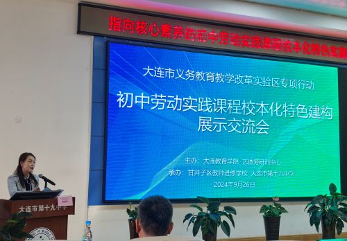 9月26日,大連市義務(wù)教育教學(xué)改革實(shí)驗(yàn)區(qū)專項(xiàng)行動(dòng)——“指向核心素養(yǎng)的初中勞動(dòng)實(shí)踐課程校本化特色建構(gòu)展示交流會(huì)”在大連市第十九中學(xué)舉行。大連教育學(xué)院藝體勞研訓(xùn)中心、甘井子區(qū)教師進(jìn)修學(xué)校等部門相關(guān)負(fù)責(zé)人,以及來自全市初中和校外實(shí)踐基地校長(zhǎng)、市區(qū)教研員、勞動(dòng)實(shí)踐課程骨干教師等150余人參加活動(dòng)。本次會(huì)議由大連教育學(xué)院藝體勞研訓(xùn)中心初中勞動(dòng)實(shí)踐教研員胡曉華主持。