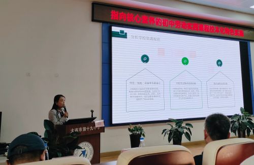 會(huì)上,大連市第十九中學(xué)校長(zhǎng)孫東博、大連大學(xué)附屬中學(xué)副校長(zhǎng)郭青松、大連市第三十九中學(xué)德育主任翟明明、大連市沙河口區(qū)學(xué)生勞動(dòng)技能訓(xùn)練中心校長(zhǎng)蘇斌,分別以《適合立教勞動(dòng)育人》《勞動(dòng)潤(rùn)心滋養(yǎng)生命》《遇見勞動(dòng)教育描繪成長(zhǎng)底色》《培養(yǎng)“知行合一”的勞動(dòng)精神為學(xué)生幸福奠基》為主題展示和匯報(bào)了各自學(xué)校勞動(dòng)實(shí)踐課程校本化特色建構(gòu)的具體做法,為參會(huì)教師展示了各自學(xué)校的勞動(dòng)教育經(jīng)驗(yàn)。胡曉華老師針對(duì)“初中勞動(dòng)實(shí)踐課程核心素養(yǎng)與校本化特色建構(gòu)”進(jìn)行了專項(xiàng)解讀,為學(xué)校勞動(dòng)教育開展和課程開發(fā)提出了指導(dǎo)性建議。