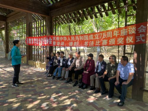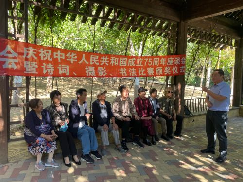 在金秋送爽、丹桂飄香的美好時節(jié),為熱烈慶祝中華人民共和國成立75周年,展現(xiàn)退休老同志的風(fēng)采與愛國情懷,9月27日,學(xué)院離退處老教授協(xié)會組織退休老同志在風(fēng)景如畫的白云雁水公園成功舉辦了一場別開生面的慶祝中華人民共和國成立75周年座談會暨書法詩詞攝影比賽頒獎會。此次活動不僅是一次對新中國輝煌歷程的深情回望,更是老同志們抒發(fā)家國情懷、共享文化盛宴的盛會。