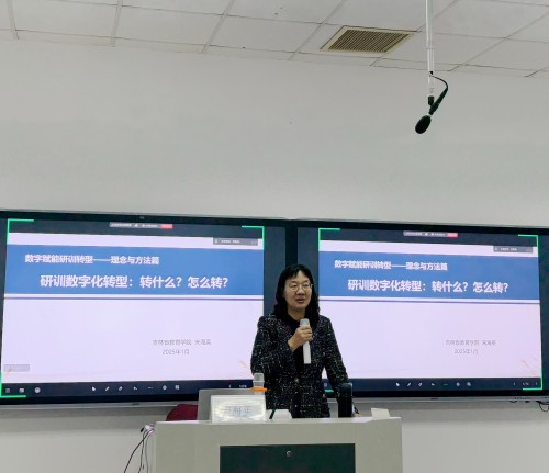 為落實人工智能賦能教育相關(guān)文件要求,進(jìn)一步強化我市研訓(xùn)教師數(shù)字素養(yǎng),教師教育辦公室于1月9日,在東軟信息學(xué)院舉辦了“數(shù)字賦能研訓(xùn)轉(zhuǎn)型升級”培訓(xùn)者專題培訓(xùn),正式開啟我市領(lǐng)雁工程---培訓(xùn)者培訓(xùn)新篇章。本次培訓(xùn)是繼2024年6月“領(lǐng)雁工程”——“GenAI賦能教育創(chuàng)新”培訓(xùn)者數(shù)字化領(lǐng)導(dǎo)力提升培訓(xùn)后,聚焦數(shù)字賦能的又一次專題培訓(xùn)。培訓(xùn)采用線下和線上混合研修方式,我市近300名研訓(xùn)教師參加了研修。學(xué)院副院長趙妤婕全程參與。