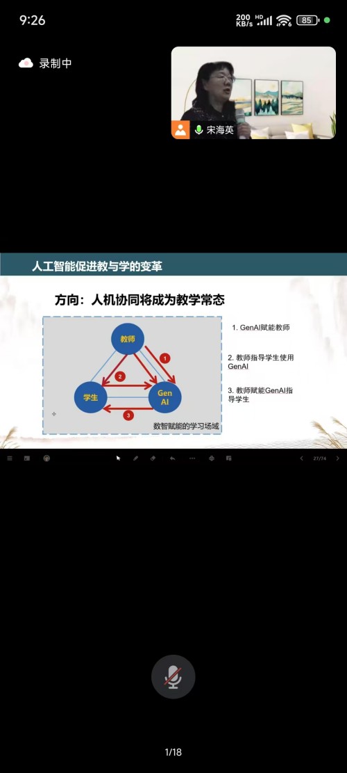 本次培訓(xùn)聚焦“數(shù)字賦能研修轉(zhuǎn)型”主題,設(shè)置專業(yè)通識和實踐操作兩個課程模塊。專業(yè)通識模塊宋海英教授圍繞《數(shù)字賦能研訓(xùn)轉(zhuǎn)型:轉(zhuǎn)什么?怎么轉(zhuǎn)?》做了專題引領(lǐng);實踐操作模塊,聚焦《生成式人工智能在培訓(xùn)中的應(yīng)用》,通過10個應(yīng)用場景的案例分析和實踐操作,強化AI賦能,實現(xiàn)遷移轉(zhuǎn)化。