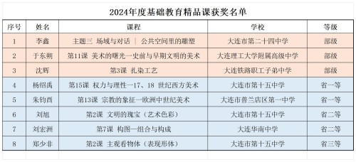 2024年度基礎教育精品課評選圓滿落幕,大連市高中美術學科8位教師參與,執(zhí)教課程全部獲得省級優(yōu)秀精品課。其中3位教師的課程獲得國家級基礎教育精品課。