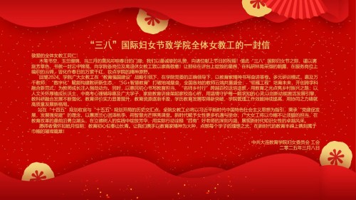 此外,學(xué)院還在3月8日為女教工們送上了一封節(jié)日慰問信。信中,對(duì)女教職工們的辛勤付出表示了衷心的感謝,并送上了誠(chéng)摯的節(jié)日祝福。這封信不僅傳遞了學(xué)院對(duì)女教工的關(guān)懷與溫暖,也進(jìn)一步增強(qiáng)了大家的歸屬感。