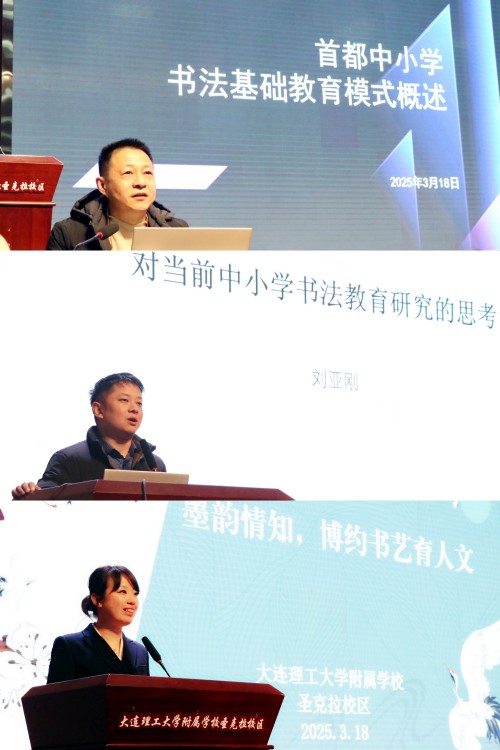 會上,三位專家進(jìn)行了講座分享:北京市書法教研員李祥魁《首都中小學(xué)書法基礎(chǔ)教育模式概述》、人美社副總編劉亞剛《對當(dāng)前中小學(xué)書法教育研究的思考》、圣克拉學(xué)校副校長盛雪《墨韻情知,博約書藝育人文》。