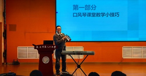 藝體勞研訓(xùn)中心主任楊俊偉在講話中鼓勵(lì)教師們認(rèn)真參加培訓(xùn),積極探索創(chuàng)新,將培訓(xùn)成果轉(zhuǎn)化為學(xué)生的能力提升。甘井子區(qū)教育局藝術(shù)視導(dǎo)員江志艷受邀作專題培訓(xùn),以《口風(fēng)琴課堂教學(xué)小技巧及作品編配》為題,從演奏技巧和作品編排策略等方面進(jìn)行了細(xì)致講解,為教師們提供了豐富的教學(xué)思路和方法。薛金結(jié)合口風(fēng)琴進(jìn)課堂的常規(guī)要求、教學(xué)內(nèi)容設(shè)計(jì)及成果展示路徑等方面進(jìn)行了總結(jié)性講解,為教師們的教學(xué)實(shí)踐指明了方向。