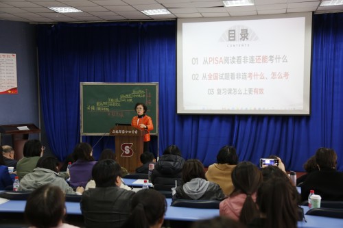 大連市第十四中學(xué)張思遠(yuǎn)老師展示非連續(xù)性文本復(fù)習(xí)課;市初中語文研訓(xùn)教師齊雅萍、甘井子區(qū)教研員趙永光老師分別結(jié)合本節(jié)課,側(cè)重關(guān)聯(lián)思維能力的培養(yǎng)、從PISA考試看非連閱讀復(fù)習(xí)策略等角度做講座。