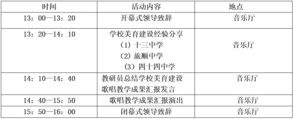 為貫徹落實(shí)《教育部關(guān)于全面實(shí)施學(xué)校美育浸潤(rùn)行動(dòng)的通知》和《遼寧省全面實(shí)施學(xué)校美育浸潤(rùn)行動(dòng)工作方案》文件精神,促進(jìn)促進(jìn)校際間的音樂文化交流,提升課堂教學(xué)實(shí)效,提升學(xué)生審美和人文素養(yǎng),提高高中學(xué)生的音樂表現(xiàn)力和創(chuàng)造力。大連教育學(xué)院藝體勞研訓(xùn)中心聯(lián)合校(園)長(zhǎng)培訓(xùn)與指導(dǎo)中心決定開展大連市普通高中特色美育(音樂)展評(píng)交流研討會(huì)和歌唱教學(xué)成果匯報(bào)活動(dòng)。