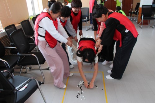活動(dòng)中,教師們鏗鏘宣誓,趣味熱身,隨機(jī)成組,各展風(fēng)采,在模擬的“渾水環(huán)境”中,通過團(tuán)隊(duì)成員的密切配合,利用道具摸取棋子。面對(duì)挑戰(zhàn),教師們紛紛開動(dòng)腦筋,制定策略,有的負(fù)責(zé)指揮,有的負(fù)責(zé)操作,有的負(fù)責(zé)保護(hù)隊(duì)友安全。
