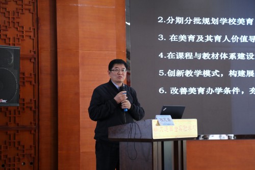 本次研討會通過南金實驗學(xué)校全員普及的學(xué)具類樂器展演、多元社團(tuán)展示、“班班有器樂”的班級表演以及口風(fēng)琴演奏課例示范,詮釋了“面向全體+發(fā)展個性”的美育理念和唱奏一體化教學(xué)實施策略。本次活動特邀人民音樂出版社黨委書記、社長、總編輯杜永壽博士結(jié)合新教材的落地及使用建議作專題講座。