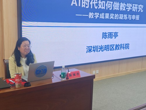 活動特邀深圳市光明區(qū)教育科學(xué)研究院研究員陳雨亭主講。陳雨亭結(jié)合自身國家教學(xué)成果獎獲獎經(jīng)驗,圍繞基礎(chǔ)教育教學(xué)成果獎申報的核心要素,從成果凝練路徑、實(shí)踐創(chuàng)新點(diǎn)挖掘、申報材料撰寫等方面展開深度解讀,強(qiáng)調(diào)成果需具備“實(shí)踐創(chuàng)新性、理論科學(xué)性、推廣價值性”,為參會者提供了系統(tǒng)化的申報方法論。