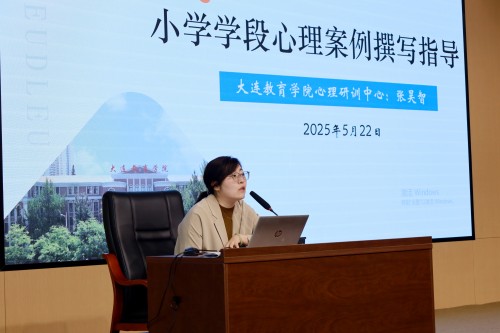 大連教育學(xué)院心理研訓(xùn)中心張昊智老師圍繞案例撰寫的名稱、簡介、背景、開展情況及創(chuàng)新經(jīng)驗(yàn)等關(guān)鍵內(nèi)容進(jìn)行“小學(xué)心理健康教育典型案例撰寫指導(dǎo)”的專題培訓(xùn),并運(yùn)用大量的實(shí)例進(jìn)行說明,為教師們提供了清晰的寫作思路和方法,并與參訓(xùn)教師積極互動,共同研討。