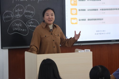 “技術(shù)解密”環(huán)節(jié)中,大連第四十八中學(xué)王輝老師作了題為《從生活到篇章:AI智能體驅(qū)動(dòng)的高中英語場景化寫作訓(xùn)練》專題報(bào)告。她闡釋了如何借助AI智能體在日常生活中循序漸進(jìn)地培養(yǎng)學(xué)生讀后續(xù)寫中語言運(yùn)用的準(zhǔn)確性與創(chuàng)造性。