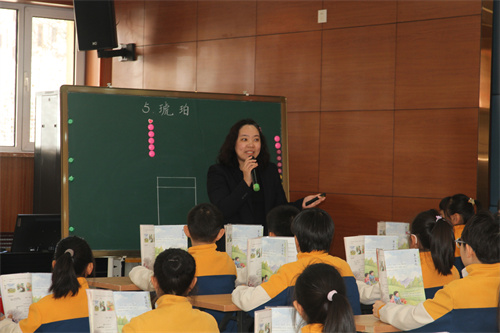 單元整體解讀之后,行知小學(xué)蒼黎黎老師執(zhí)教了《琥珀》一課。課堂上,蒼黎黎老師引領(lǐng)學(xué)生自主學(xué)習(xí),目標(biāo)清晰,環(huán)環(huán)相扣,有效落實(shí)閱讀要素。“教-學(xué)-評(píng)-練”一體化課堂教學(xué),為與會(huì)教師提供了參考和借鑒。