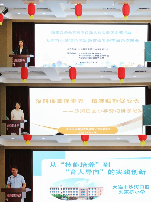 6月17日,大連市小學特色勞動教育體系研究展示交流會在劉家橋小學舉行。會議由大連教育學院藝體勞研訓中心主辦,沙河口區(qū)教育局、沙河口區(qū)教師進修學校、劉家橋小學承辦,大連商業(yè)學校協(xié)辦。藝體勞研訓中心、職成教研訓中心研訓教師,各區(qū)市縣研訓教師、校長、孔昭娟名校長工作室成員、勞動骨干教師等250余人參加會議。